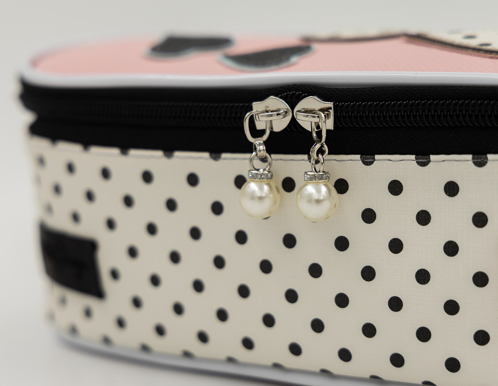 Zentrale Öffnung mit Reissverschluss mit Perlendetail.