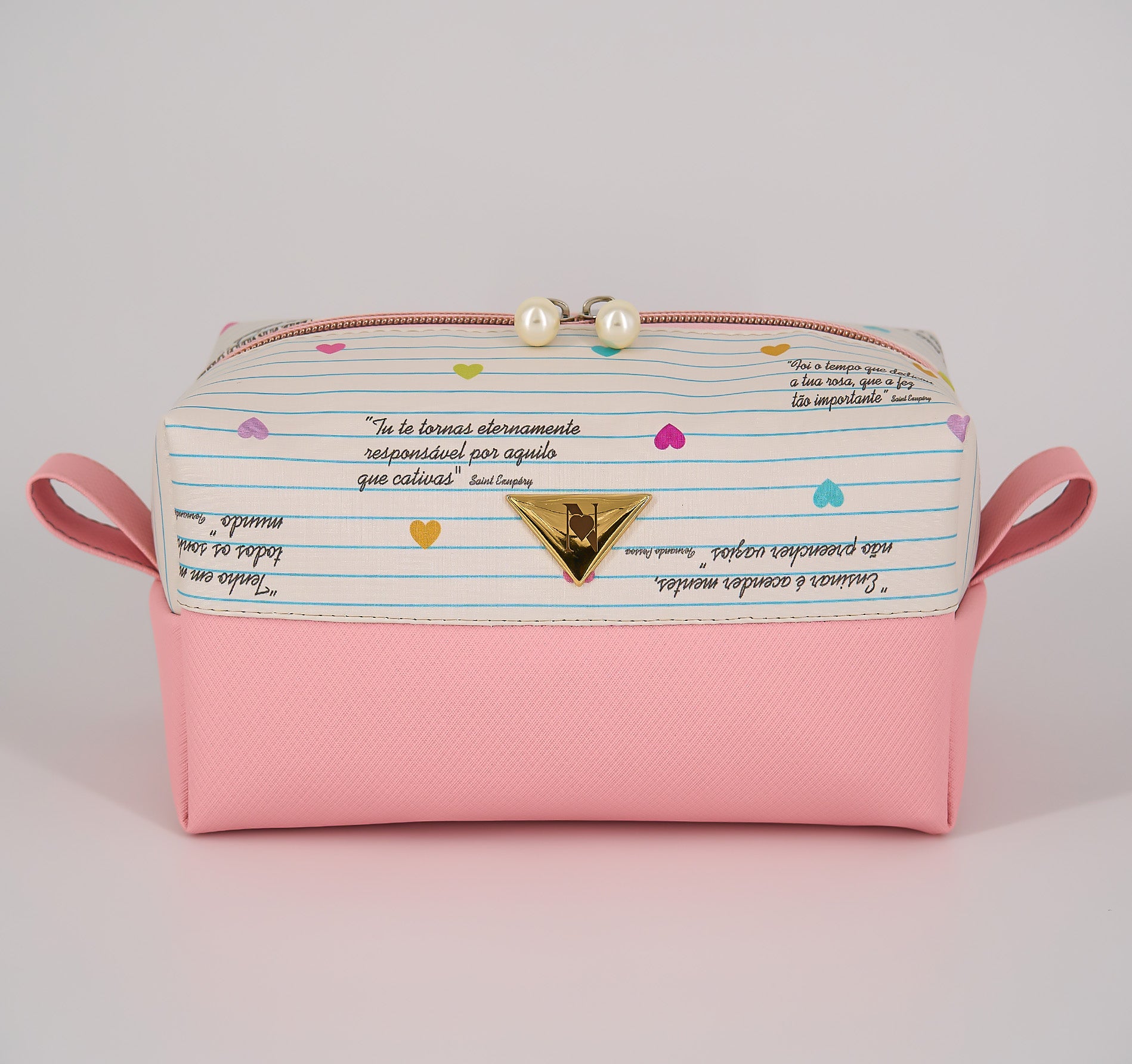 Diese zauberhafte Necessaire aus hochwertigem, leicht glänzendem Kunstleder in Rosé und Weiss ist ein echter Blickfang.